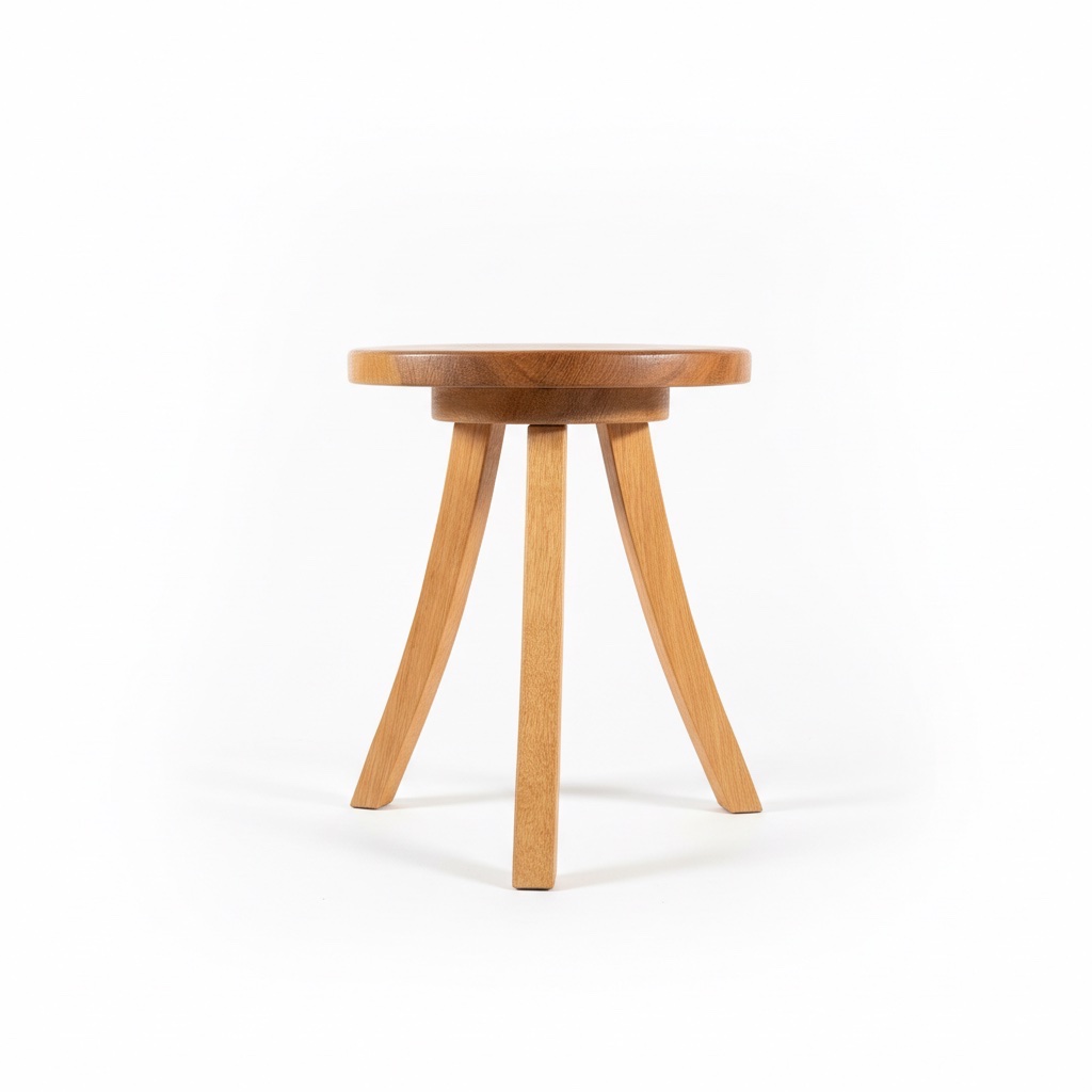 Stool crafted from regional solid oak, formed from a single piece of wood. Constructed using pure wooden joinery, without screws or metal fittings.